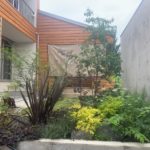 もともとの計画は樹木周りは植栽帯にできるようにと芝生を控える予定でした。敷地内の水を確実に集水出来るよう全面芝生に急遽変更し、同じ姫高麗芝を追加し敷き込みしたのが去年の秋。冬の間は全く分からなかったのですが春からの芽吹きで写真のようにまるで違う種類の芝を植えたようになってしまいました。
